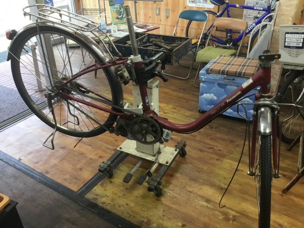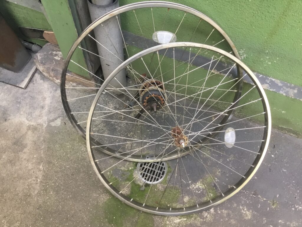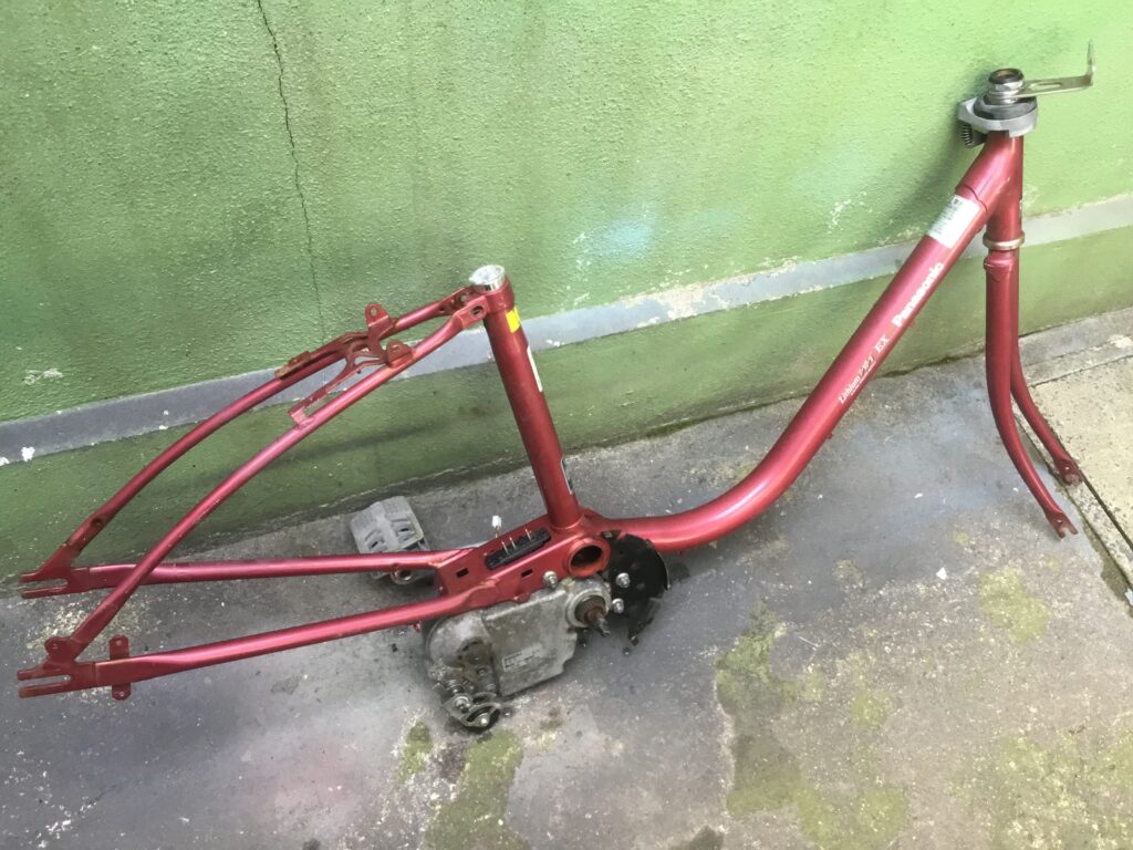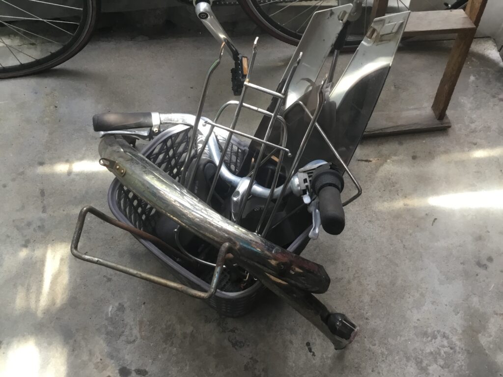 レンタサイクル用電動アシスト自転車 自転車修理 2025.07.102025.08.07 電動アシスト自転車を引き取ったのでレンタサイクル用に整備します。 まず分解。サビを落として、掃除して、磨いて、磨いて、磨いて。 タイヤ、ブレーキワイヤー、サドルを取り替えて組み立て。 完成です。